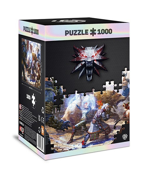 Good Loot: The Witcher: Geralt & Triss in Battle puzzles (1000 dílků) Romantika stranou, je na čase se poprat! Připojte se k epické bitvě proti starodávným tvorům a divokým Berserkerům obývajícím tajemné ostrovy Skellige. Doprovázejte Geralta a Triss na nebezpečné cestě, když se po staletí potýkají s tajemnými rituály, kterým už nikdo na kontinentu nevěří. Vlastnosti: * jedinečná, dedikovaná grafika od tvůrců hry * vysoce kvalitní zpracování založené na nejnovějších tiskových technologiích * dokonalé lícování dílků * výrazné, syté barvy * odolné proti ohybu * zdokonalené puzzle s efektem plátna - snižuje odraz světla Technické parametry: * velikost po složení: 68 x 48 cm * váha: 800 g * velikost boxu: 21 x 15 x 15 cm * počet dílků: 1000 ks Obsah balení: * puzzle nejvyšší kvality, 1000 kusů (68x48 cm) od renomovaného výrobce * plakát velikosti grafiky z puzzle (1: 1) * potištěný bavlněný pytlík se šňůrkou pro uložení puzzle * kvalitní krabice s efektním obalem navržená pro hráče