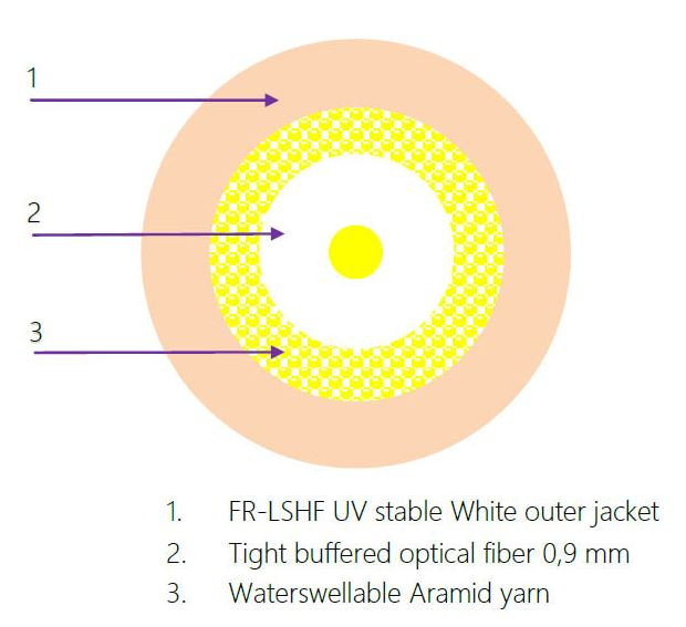 Popis Optický kabel pro náročné FTTh aplikace s vláknem G657B3. Výrobce vláka je YOFS. Flexibilní optický kabel pro náročné vnitřní FTTH aplikace. Průměr ohybu od 5 mm. Díky použitému vláknu G657B3, které vykazuje minimální útlum i v 5mm makroohybu, v důledku čehož dokáže přenášet bez potíží světelný signál i v nepříznivé situaci nešetrného zkrutu. Je tedy mimořádně vhodný do náročných aplikací, jako jsou například frekventované kanceláře nebo prostředí bytu koncového klienta. Kabel je svojí konstrukcí flexibilní, a nedělají mu problém ani ostré úhly v kabelových lištách.