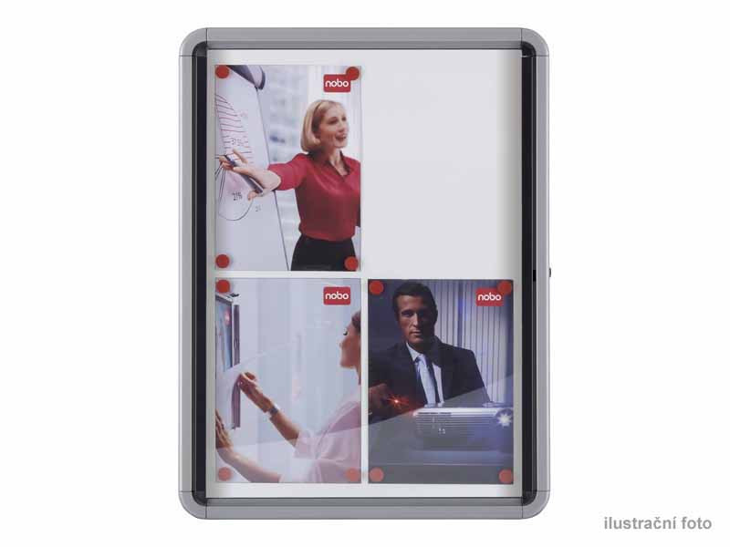 - Vitrína pro vnitřní použití s moderním designem - Ideální jako komunikační a sdělovací prostředek na recepcích, v halách hotelů, obchodů, škol apod. - Zaoblený hliníkový rám s tmavě šedými plastovými rohy - Zesílené bezpečnostní sklo 4 mm silné - Uzamykatelná (včetně 2 klíčů) - Magnetická kovová zadní bílá stěna vhodná pro magnety a k popisování - Díky připevnění na zeď pomocí hliníkového rámu zůstává prezentační plocha zcela neporušená - Snadné čištění ubrousky Nobo - Maximální otevření dvířek do 135° zabraňuje poškození stěny i vitríny - Dodává se včetně montážní sady - Vitrínu lze zavěsit na šířku i na výšku - Vnější rozměry 69,2 x 75,2 x 3,7 cm