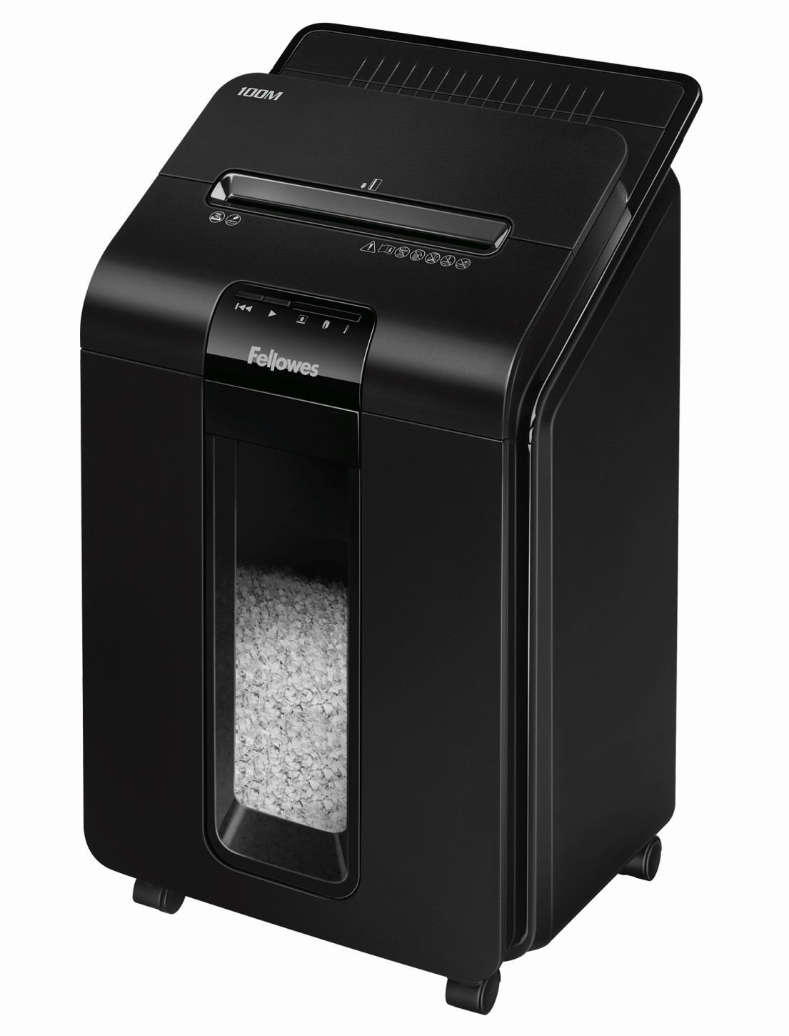 Vstupní model z řady automatických skartovačů značky Fellowes. Jen nalož, zapni a běž. Automatický skartovací stroj Vám šetří čas strávený vkládáním skartovaných papírů. Zařízení je schopno na jeden pracovní cyklus při automatickém podávání skartovat až 100 listů 70g papíru v křížovém mikrořezu řezu 4×10 mm. Skartovač je také vybaven vstupní štěrbinou pro ruční podání až 10 listů papíru. Objem odpadního koše 23 litrů. Řezací mechanismus zpracuje při manuálním podávání sešívačkou sešité papíry (až 20 sešitých listů) a kreditní karty. Snadná manipulace se strojem díky pojezdovým kolečkům. Ovládání je zajištěno prostřednictvím dotykového panelu s LED podsvětlením. Samozřejmostí je indikace přehřátí a plného odpadního koše. Automatický ochranný systém proti přehřátí. Délka nepřetržitého pracovního cyklu 15 min. Řezné nože ze speciální tvrzené oceli, silný motor a robustní převodové součásti předurčují AutoMax pro dlouhodobé a bezproblémové využití. Skartovač je primárně určen pro jednoho uživatele. Skartovač je vybaven řadou pokročilých funkcí, které usnadňují jeho obsluhu a užívání: Funkce „SilentShred“ výrazně minimalizuje zatížení hlukem při skartování Auto-Reverse™ – zajistí přerušení skartace a zpětný chod při záseku Funkce „Sleep MODE“ – automatické vypnutí stroje po 2 minutách nečinnosti • Kapacita zásobníku : 100 listů • Skartovací kapacita při ručním podání : 10 listů • Typ řezu : 4x10 mm • Stupeň utajení / NBÚ : typ 2 - důvěrné • Šířka vstupu : 220 mm • Skartace spon ze sešívačky : ano • Skartace kancelářských spon : ano • Skartace kreditních karet : ano • Skartace CD : ne • Délka nepřetržitého pracovního cyklu : 15 minut • Objem koše : 23 litrů - vysouvací odpadní koš pro snadnou manipulaci • Rozměry (Š x H x V) : 370 x 330 x 640 mm • Hmotnost : 13,2 kg • Napájení : 230–240 V/ 50Hz PRODUKTOVÉ VIDEO: https://youtu.be/hp_UZp-I8QI