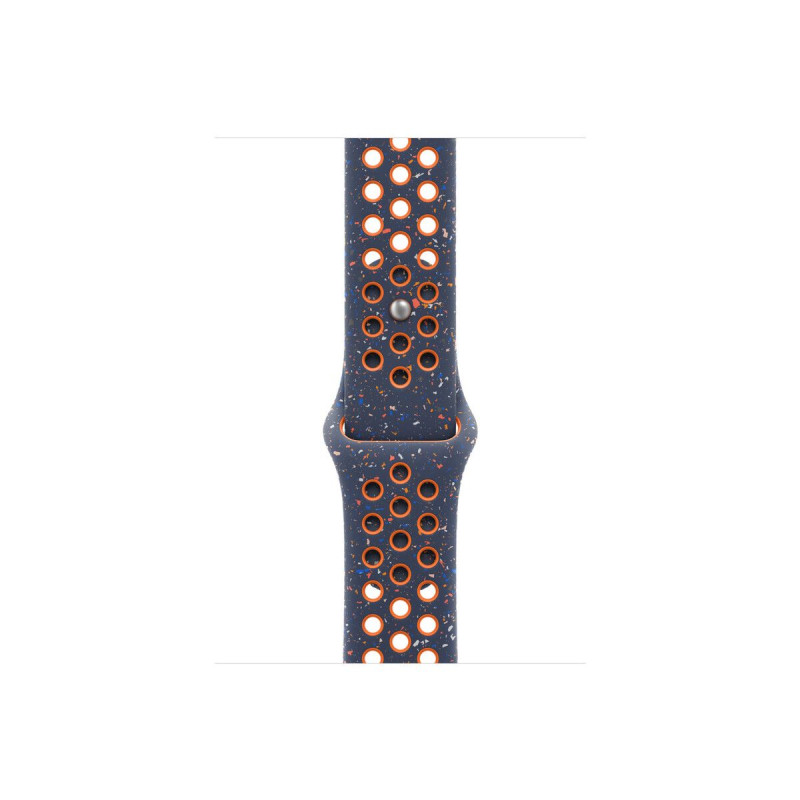 Apple 40mm sportovní řemínek Nike Tenhle sportovní řemínek Nike má vylisované otvory pro větší vzdušnost, je odolný, pevný a přitom krásně poddajný. Obsahuje barevné vločky vytvářející náhodné vzory, takže každý řemínek je originál. Jeho hladký, hutný materiál se elegantně ovine kolem zápěstí a příjemně sedí. A nově se zapíná na hliníkový kolíček s matným povrchem. Řemínek obsahuje minimálně 30 % recyklovaného fluoroelastomeru, přičemž obsah recyklovaného fluoroelastomeru v každé vločce je minimálně 66 %. V krabici Sportovní řemínek Nike k Apple Watch Technické specifikace Materiál: Fluoroelastomer Barva: Blue Flame Nike Velikost: M/L Kompatibilita - Modely Apple Watch * 38 mm * 40 mm * 41 mm