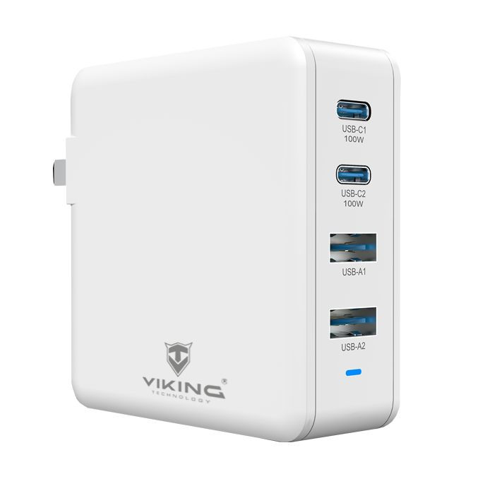 VIKING USB GaN charger 100W PD Rychlonabíjecí, síťová USB stanice až pro 4 USB zařízení (2x USB-C, 2x USB-A) o celkovém výkonu 100W s podporou technologií QC4+ a PD3.0. Elektronika obsahuje inteligentní čip pro identifikaci zařízení a optimalizaci nabíjecího proudu a napětí. Pro nabíjení lze využít jak standardní USB, tak moderní port USB-C. Co je to GaN? - Nitrid gallitý bývá často označován za materiál budoucnosti. Polovodiče z technologie GaN snesou mnohem vyšší frekvence. Nabíjení tak může být mnohem efektivnější. Nadstandardní kvalita zpracování a spolehlivost, řadí tento výrobek do vyšší třídy síťových nabíječek. 4x nabíjecí USB porty jsou vybaveny technologií, která poskytuje tu nejbezpečnější maximální rychlost nabíjení pro různá zařízení. Všechny porty mohou být obsazeny současně. Nabíječka poskytuje celkový výkon až 100W. Všechny USB porty stanice jsou vybavené pokročilou, elektronickou ochranou na ochranu nabíjeného zařízení před nadměrným proudem, zkratem a přehřátím. Díky nabíječce VIKING GaN 100W PD, ušetříte místo v elektrických zásuvkách a zbavíte se tak zbytečných kabelů a nabíječek. Všechna zařízení tak mohou být nabíjena na jednom místě. Vhodné pro nabíjení všech Android, iOS a Windows zařízení, fotoaparátů, powerbank a zkrátka všeho s USB konektorem. Technické specifikace: Značka: VIKING Model: VIKING USB GaN charger 100W PD Max. výkon 100W Vstup 100-240Vac, 50/60Hz, 2A Max Výstupy: USB-C1, C2 (PD 3.0) 5V/3A , 9V/3A , 12V/3A , 15V/3A , 20V/5A 100W max. USB-A1, A2 (QC 4+) 4.5V/5A, 5V/4.5A, 9V/3A, 12V/2.5A, 20V/1.5A 30W max. Doplňující specifikace: Rozměry produktu 75x75x28,7mm Váha 216g Certifikace CE, FCC, CCC, ETL, PSE, KC, CB Ochrana Ochrana proti přebití, proti přepětí, proti přehřátí, nadproudová ochrana, proti zkratu