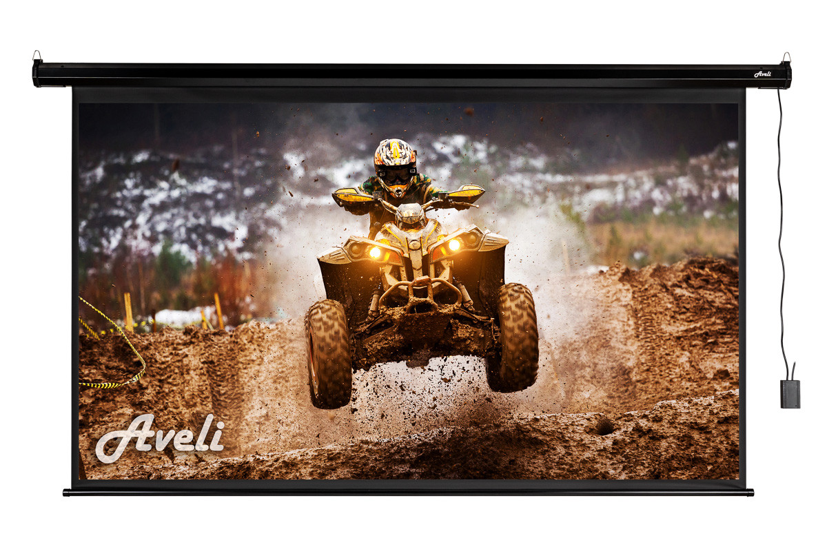 Elektrické projekčné plátno AVELI, 221x125 (16:9) 100'', čierny tubus