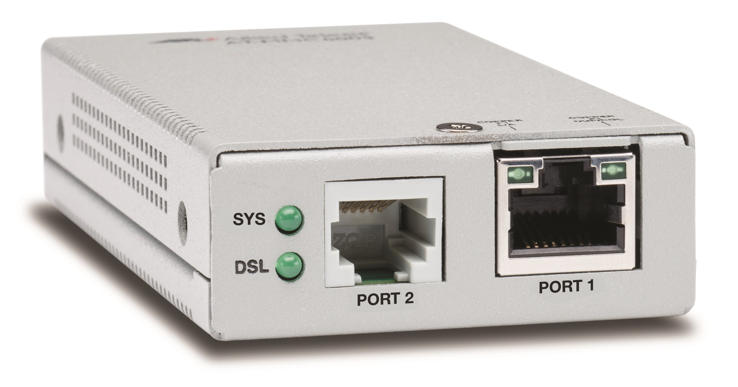 MMC6000 Series - Gigabit Ethernet over VDSL and Coax Mini Media Converters OVERVIEW Extended Ethernet Operation Used as a pair, the Allied Telesis ATMMC6005 provides up to 150Mpbs of bidirectional data transfer, while supporting POTS* service over phonegrade, twisted-pair wiring (CAT1, 2, 3) at distances up to 3 km or 10,000 feet. These units are the ideal solution for providing data on “last-mile” twistedpair circuits or existing in-building wiring. Standard Ethernet operation is preserved end-to-end, retaining VLAN tags, and Ethernet MAC information across the link, while higher layer protocols are passed transparently. 10/100Mbps Ethernet operation is supported simultaneously with POTS*, ISDN or PBX signaling, without disruption. MTU and MDU Applications Multi-Tenant Units (MTU) such as offices and campuses, and Multiple Dwelling Units (MDU) such as hotels and apartments are an ideal environment for AT-MMC6005 network extenders, where private phone-grade wiring can be used to provide broadband access to Internet services including video streaming, World Wide Web, gaming and e-mail. There is no need to re-wire premises with expensive CAT5 or fiber to provide broadband Ethernet services. Standalone and Rack-mount The Allied Telesis AT-MMC6005 provider unit is available as a compact standalone unit for installation at the central office, or alternatively, it can be rack-mounted in a standard Allied Telesis AT-MMCR-18 chassis. Capable of housing up to eighteen units in one compact chassis, it features a redundant power supply, simplifying wiring and minimizing space requirements. Plug and Play Operation Simply connect to the RJ-45 Ethernet port and the unit will automatically auto-sense and configure for 10/100/1000T, as well as full- or halfduplex Ethernet operation. Key features * Up to 150Mbps bidirectional VDSL operation up to 3 km or 10,000 ft * Can function as a subscriber or provider by flipping a switch * Supports both fast mode and interleave mode * Operates over category 1, 2, 3 or 5 telephone-quality cabling 10/100/1000 * Ethernet port * Auto MDI/MDI-X * System, Ethernet and VDSL LEDs * Configurable via DIP switches * Standalone and rack-mountable * Wall-mountable using optional AT-WLMT bracket * Compact form factor * Both symmetrical and asymmetrical operation * Metal chassis * Energy Star compliant external power adapter TECHNICAL SPECS Product Specifications *DMT modulation *Spectrally compatible with ISDN and POTS services FDD duplexing *Datarate up to 100Mbps / 60Mbps full-duplex *4M flash *Half-/full-duplex *Auto-negotiation *Auto MDI/MDI-X Speed/Distance *Speed up to 100Mbps / 60Mbps at short distances, data throughput up to 3km or 10,000ft distances (subject to cable type) Front Panel Indicators *System power *Ethernet link *Ethernet activity *VDSL link *VDSL rate Interface Connections *VDSL interface: RJ-11 *Ethernet interface: RJ-45 *POTs interface: RJ-11 *Management: 4-pin DIP switch Physical Characteristics VDSL Interface *Dimensions (W × D × H): 50.8 mm x 99.1 mm x 20.3 mm *Weight: 0.2 kg *Mounting Tabletop and rack-mountable (requires AT-MMCR18 chassis) Environmental Specifications *Operating Temperature: 0 °C to 50 °C *Storage Temperature: -30° C to 70° C *Operating Humidity: 5% to 90% non-condensing *Storage Humidity: 5% to 95% non-condensing *Operating Altitude Range: Up to 3,000 m Power Characteristics *External power supply: 240V AC, 50Hz *Input supply voltage: 12vDC *Max current: 300mA *Power consumption: 2W *Energy Star compliant Country of Origin China