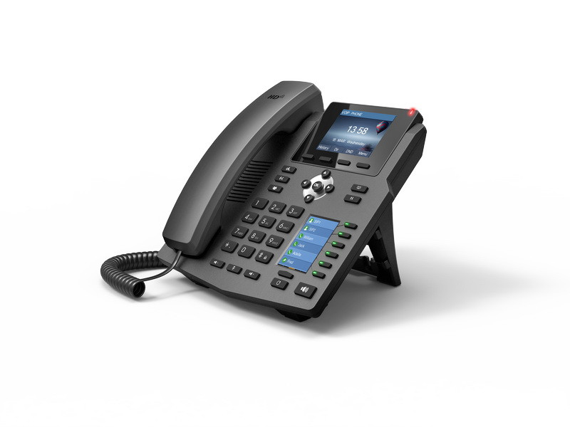 Fanvil X4G je funkčně bohatý SIP telefon pro podnikání. 4 linkový IP telefon byl navržen s ohledem na snadné použití i v těch nejmenších detailech. Dva síťové porty gigabitové porty s integrovaným PoE jsou ideální pro široké síťové použití. Poskytuje vynikající kvalitu zvuku a bohatý vizuální zážitek. S druhou barevnou DSS obrazovkou podporuje telefon až 30 DSS tlačítek, které zlepšují efektivitu práce. Nový X4G kombinuje výhody stávajícího designu uživatelského rozhraní podnikových telefonů s barevným displejem. Vzhled uživatelského rozhraní a provozní zážitek zaznamenaly kvalitativní skok. První IP telefon s dvěma LCD (Hlavní+DSS) displeji v VoIP oboru. 6 DSS tlačítek koresponduje s LCD displejem a poskytuje dynamické funkce DSS/BLF až na pět stránek, celkem tedy 30 virtualizovaných DSS tlačítek. Funkci rozšiřujícího modulu převezme tento telefon sám. Hlavní funkce: - 4 SIP linky - Hlavní 2.8” barevný diplej s rozlišením 320 x 240 - Druhý LCD s 6 DSS tlačítky nabízející dynamické funkce DSS/BLF až na pět stránek, celkem 30 DSS tlačítek. - Dva gigabitové porty, integrované PoE - Ekonomický a ekologicky šetrný design s elegantním krytem - Kompatibilní s hlavními platformami: 3CX, Asterisk, Broadsoft, Elastix, Zycoo atd.