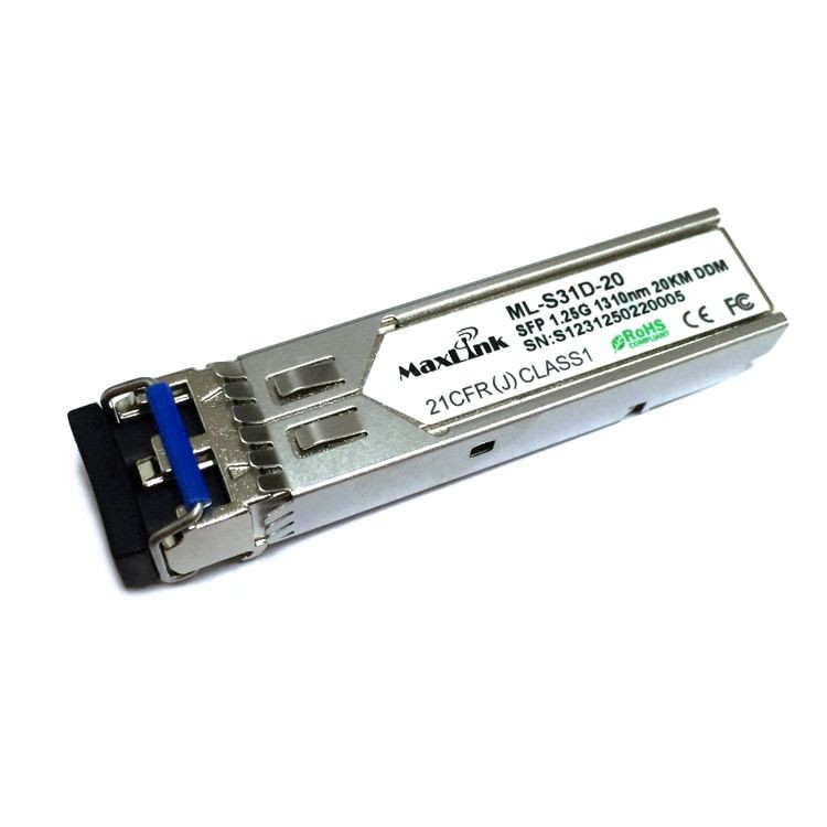 MaxLink 1.25G SFP optický modul, SM, 1310nm, 20km, 2x LC konektor, DDM ML-S31D-20 je 1.25G SFP modul s 1310nm vlnovou délkou, dvěmi LC konektory a maximální vzdáleností 20km po singlemode optickém vlákně. SFP modul podporuje monitoring, neboli DDM funkci. LC konektory v SFP modulu mají broušení typu UPC. Modul je kompatibilní se všemi aktivními prvky od MikroTiku a také se zařízeními jiných výrobců ''cisco compatibile''. Formát: SFP Pro typ kabelu: Single Mode Přenosová rychlost: 1 Gbps Vlnová délka - Tx/Rx [nm]: 1310 Dosah [km]: 20 Typ přenosu: 2-vláknový Optické konektory: 2x LC