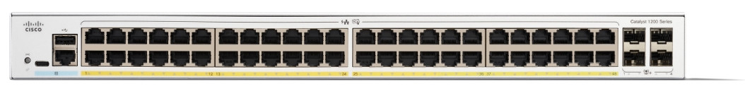 Přepínače Cisco Catalyst řady 1200 jsou jednoduché, spolehlivé, flexibilní a cenově dostupné stavební prvky pro sítě malých a středních podniků. Díky intuitivnímu ovládacímu panelu, pokročilým funkcím a všudypřítomnému zabezpečení jsou přepínače Cisco Catalyst řady 1200 připraveny urychlit vaši digitální transformaci. Jsou k dispozici v provedení 1 a 10 Gigabit Ethernet a nabízejí kombinaci 8 až 48 portů optimalizovaných pro energetickou účinnost pro udržitelnou budoucnost. Pokud potřebujete spolehlivé řešení pro sdílení online zdrojů a připojení počítačů, telefonů a bezdrátových přístupových bodů, přepínače řady Catalyst 1200 představují ideální řešení za přijatelnou cenu. VÝHODY: Jednoduchost správy Intuitivní nástroj Cisco Business Dashboard, Cisco Network Plug and Play (PnP) agent a mobilní aplikace zjednodušují provoz sítě a automatizují nasazení, monitorování a správu životního cyklu přepínačů, směrovačů a bezdrátových access pointů Cisco Business. Flexibilita Rozsáhlé portfolio poskytuje maximální flexibilitu od 8 do 48 portů a kombinace napájení přes Ethernet (PoE+), optimalizované pro energetickou účinnost pro udržitelnou budoucnost. Flexibilní cenové modely doplňují každou fázi růstu podniku. Zabezpečení Zabraňte narušení sítě a segmentujte provoz podle obchodních potřeb pomocí pokročilejších bezpečnostních funkcí. Vylepšené funkce zabezpečení poskytují pevný základ pro ochranu soukromí vašich uživatelů. Inovativní design Elegantní a kompaktní design přepínačů je ideální pro instalaci mimo elektroinstalační skříň, například v maloobchodních prodejnách, otevřených kancelářích a učebnách. Spolehlivost Přepínače jsou vybaveny osvědčenou technologií společnosti známé svými síťovými inovacemi, které pomáhají zajistit kontinuitu provozu. Efektivní využití energie Ušetřete náklady na energii -přepínače řady Catalyst 1200 snižují spotřebu energie až o 58 % oproti předchozí generaci (CBS, C1000, úspora energie se u jednotlivých modelů liší). Služba podpory Cisco Přepínače Cisco Catalyst řady 1200 nabízejí spolehlivý výkon a jistotu, kterou od řešení Cisco očekáváte. Jsou osvědčeným řešením, které bylo důkladně testováno, aby pomohlo zajistit optimální provozuschopnost sítě pro zajištění kontinuity podnikání, zahrnují aktualizace softwaru bez licenčních nebo servisních požadavků, bezplatný roční přístup do našeho centra podpory pro malé podniky pro průběžnou podporu a omezenou doživotní záruku, která pomůže udržet hladký chod vašeho podnikání. SPECIFIKACE Technické parametry *Kapacita v milionech paketů za sekundu: 77,38 mpps *Přepínací kapacita v gigabitech za sekundu: 104 Gb/s *Tabulka MAC: 8K adres *Jumbo frames: až 9000 bajtů *LED: System, Link/Act, PoE, Speed *Tlačítka: Reset *Port pro konzoli: ano *USB port: port USB-C na předním panelu přepínače pro snadnou správu souborů a obrázků Flash: 512 MB CPU: dvoujádrový procesor ARM na 1,4 GHz DRAM: 1 GB DDR4 Minimální požadavky na systém: *Web browser - Chrome, Firefox, Edge, Safari *eternetový síťový kabel kategorie 5e *nainstalovaný protokol TCP/IP, síťový adaptér a síťový OS (jako je MS Windows, Linux nebo Mac OS X) Quality of Service (QoS): 802.1p priority based, 8 hardware queues, priorita přiřazení do front a Weighted Round-Robin (WRR) na základě DSCP a třídy služby (802.1p/CoS) atd. Přepínání vrstvy 2 - podpora standardu 802.1d Spanning Tree Protocol (STP), podpora protokolu IEEE 802.3ad Link Aggregation Control Protocol (LACP), podpora až 255 aktivních VLAN najednou, protokol VSDP (Voice Services Discovery Protocol) atd. Přepínání vrstvy 3 - IPv4, IPv6 static routing, rozhraní - na fyzickém portu, LAG, rozhraní VLAN nebo rozhraní zpětné smyčky, zabezpečení: ACLs (Access Control Lists) - podpora až pro 512 pravidel atd. Standardy: IEEE 802.3 10BASE-T Ethernet, IEEE 802.3u 100BASE-TX Fast Ethernet, IEEE 802.3ab 1000BASE-T Gigabit Ethernet, IEEE 802.3ad Link Aggregation Control Protocol, IEEE 802.3z Gigabit Ethernet, IEEE 802.3x Flow Control, IEEE 802.3 ad LACP, IEEE 802.1D (STP), IEEE 802.1Q/p VLAN, IEEE 802.1w RSTP, IEEE 802.1s Multiple STP, IEEE 802.1X Port Access Authentication, IEEE 802.3af, IEEE 802.3at Celkem systémových portů: 52 x Gigabit Ethernet = 48x Gigabit Ethernet RJ-45 + 4x Gigabit SFP Napájení: interní, 100 - 240V, 50-60 Hz Počet portů podporujících PoE: 48 Napájení určené pro PoE: 375 W (PoE+) Typ kabeláže: nestíněná kroucená dvojlinka (UTP) kategorie 5e nebo vyšší pro 1000BASE-T Možnosti montáže: stolní (Desktop), nástěnný Paketová vyrovnávací paměť (dynamicky sdílená): 3 MB Ventilátor: 1 Spotřeba energie v systému: 110V=44,81W, 220V=43,93W Rozměry (Š x H x V): 445 x 350 x 44 mm Hmotnost: 5,43 kg Provozní teplota: -5 - 50°C Provozní vlhkost: 10% až 90% relativní, bez kondenzace MTBF (hodin): 856,329 Obsah balení: - Cisco Catalyst 1200 switch - napájecí kabel - montážní sada - instalační příručka Obrázek je ilustrativní. Držáky do racku nejsou součástí balení.