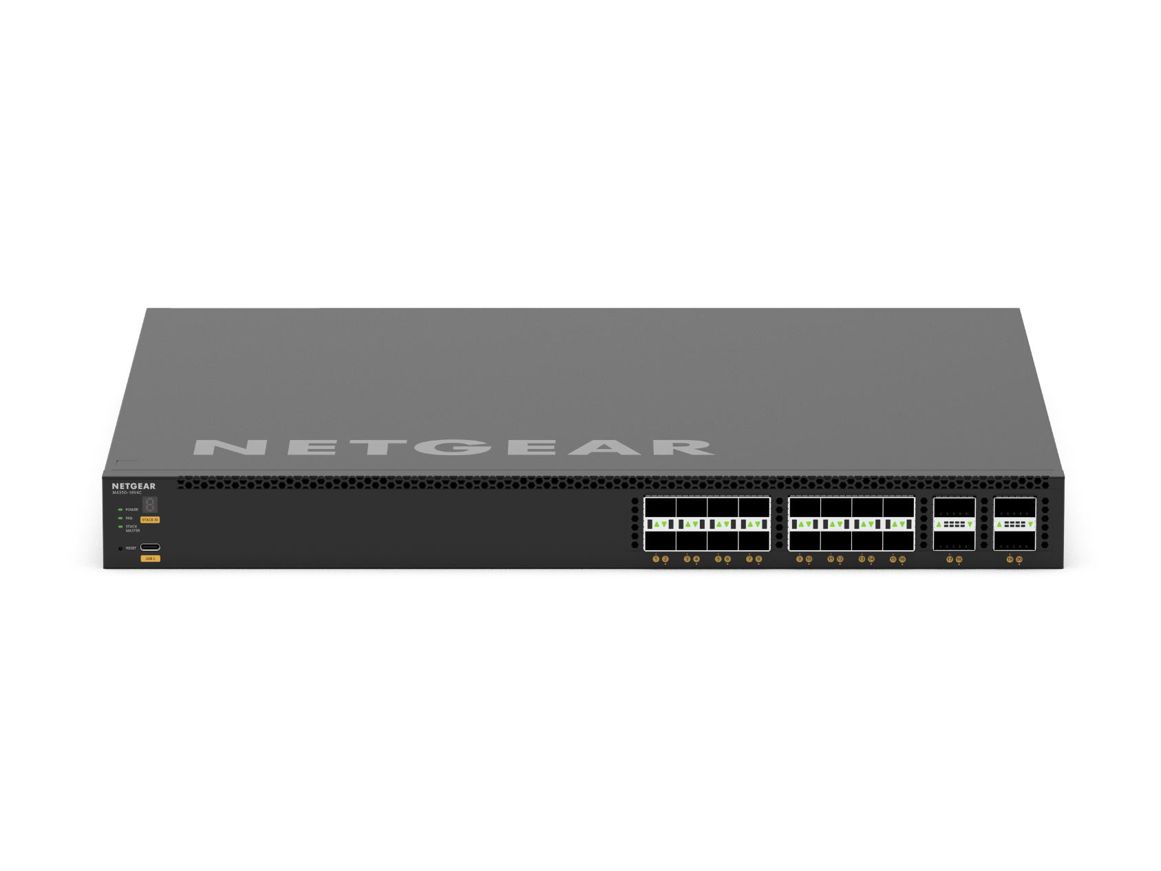 Specifications *16 25GBASE-X SFP28 ports with 4 100GBASE-X QSFP28 uplinks. *420W internal power supply *1 slot for modular power supply (1+1 redundancy). *Any APS600Wv3, APS1200Wv2, or APS2000Wv2 can be used. *Virtual Chassis stacking provides non-stop forwarding (NSF) and hitless failover. *Layer 3 feature set includes static, policy-based, and dynamic routing. *NETGEAR IGMP Plus™, AV User Interface, and Engage Controller speed up AV installations. *NETGEAR ProSAFE® Limited Lifetime Hardware Warranty. *Lifetime Next Business Day Hardware Replacement. *Dimensions: 440x400x43.2 mm *Weight: 7.15Kg (15.77 lb)