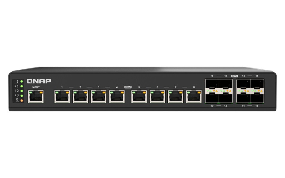 QNAP riadený priemyselný switch QSW-IM3216-8S8T: 16x 10G porty (8x 10Gb SFP+ a 8x 10Gb RJ-45)